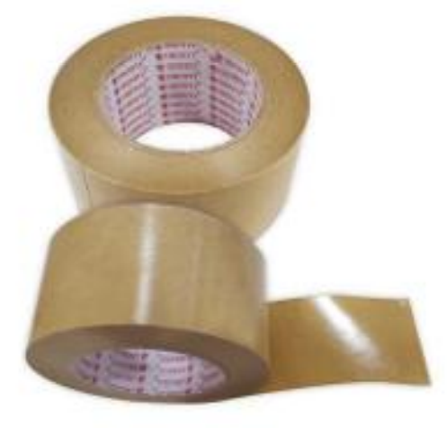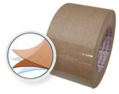 Kraft paper tape is a self-adhesive tape made out of a flat back repulpable kraft paper strip with a strong adhesive coating at the back. It has a glass fiber filament yarn embedded between the layers that give it its characteristic strength and resilience against tearing through the transition.